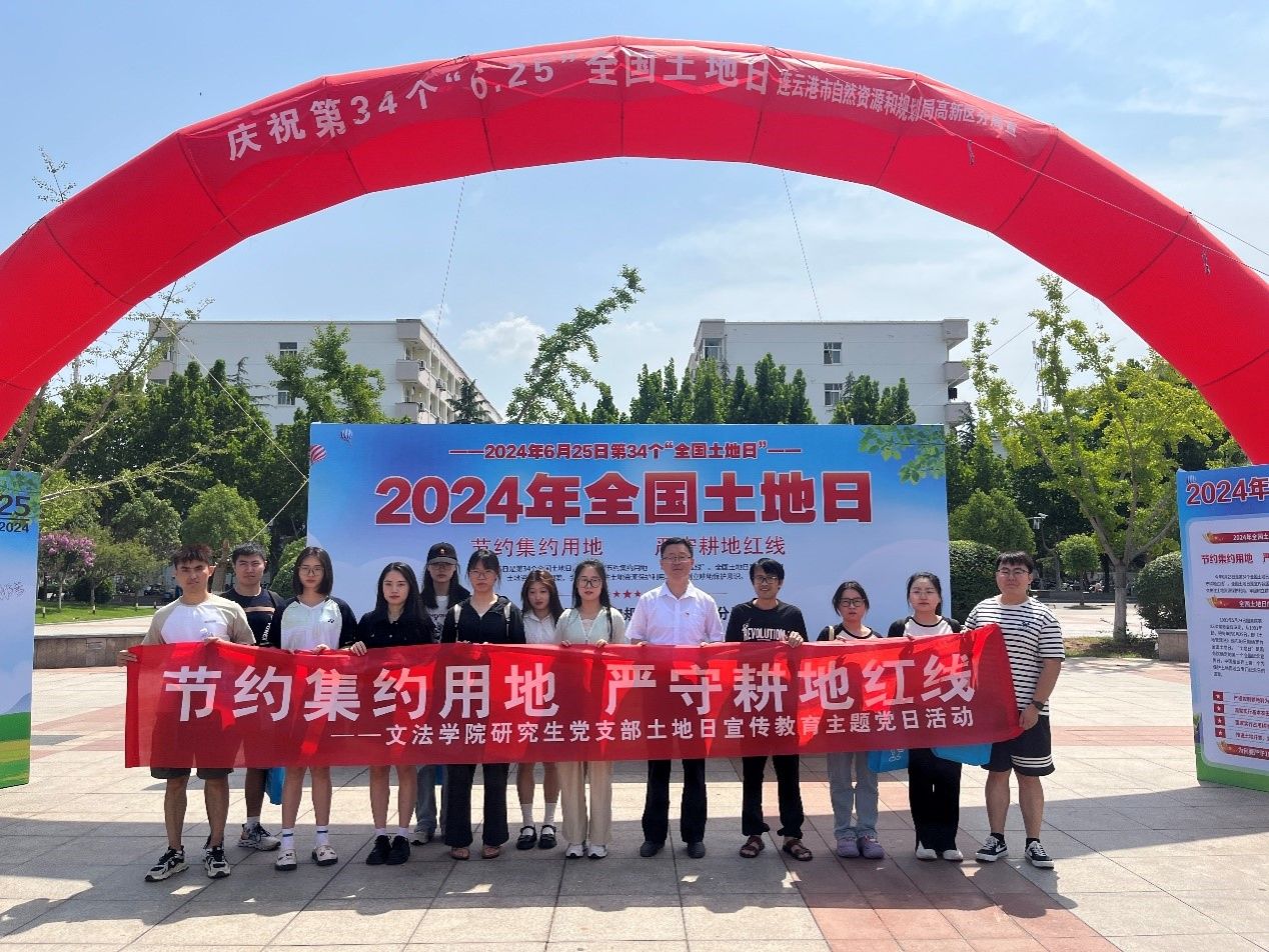共建签约仪式后,为庆祝我国第34个全国土地日,公共管理系党支部、研究生党支部、学生第一党支部与第八自然资源所党支部在学生生活区广场开展了以“节约集约用地 严守耕地红线”为主题的宣传活动。通过悬挂横幅、发放宣传手册、设立咨询台、签名墙等形式,向校内师生员工广泛普及节约集约使用土地、严格保护耕地的法律法规,以及地质灾害防范与避险的方法和措施。