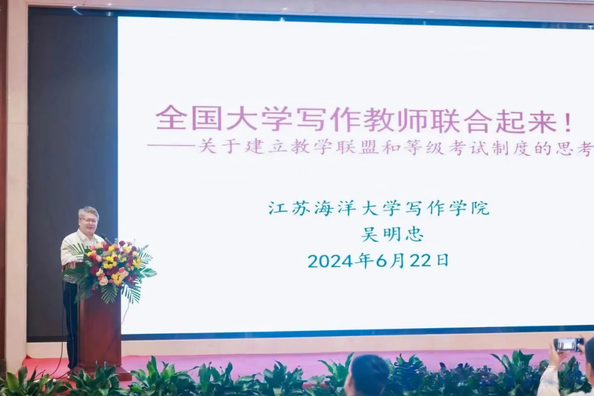 2024年6月21日至23日,全国第十届高校大学语文/写作与通识教育会议在扬州召开。这次会议由扬州大学与高等教育出版社上海出版事业部共同承办。来自复旦大学、浙江大学、上海交通大学、安徽大学、东北师范大学、扬州大学、江苏海洋大学等国内近百所高校250多位代表参加线下会议,4000多位教师参加线上会议。我校文法学院院长、写作学院执行院长吴明忠应邀在会上发表题为《全国大学写作教师联合起来!——关于建立教学联盟和等级考试制度的思考》的演讲,在与会代表中引起热烈反响。