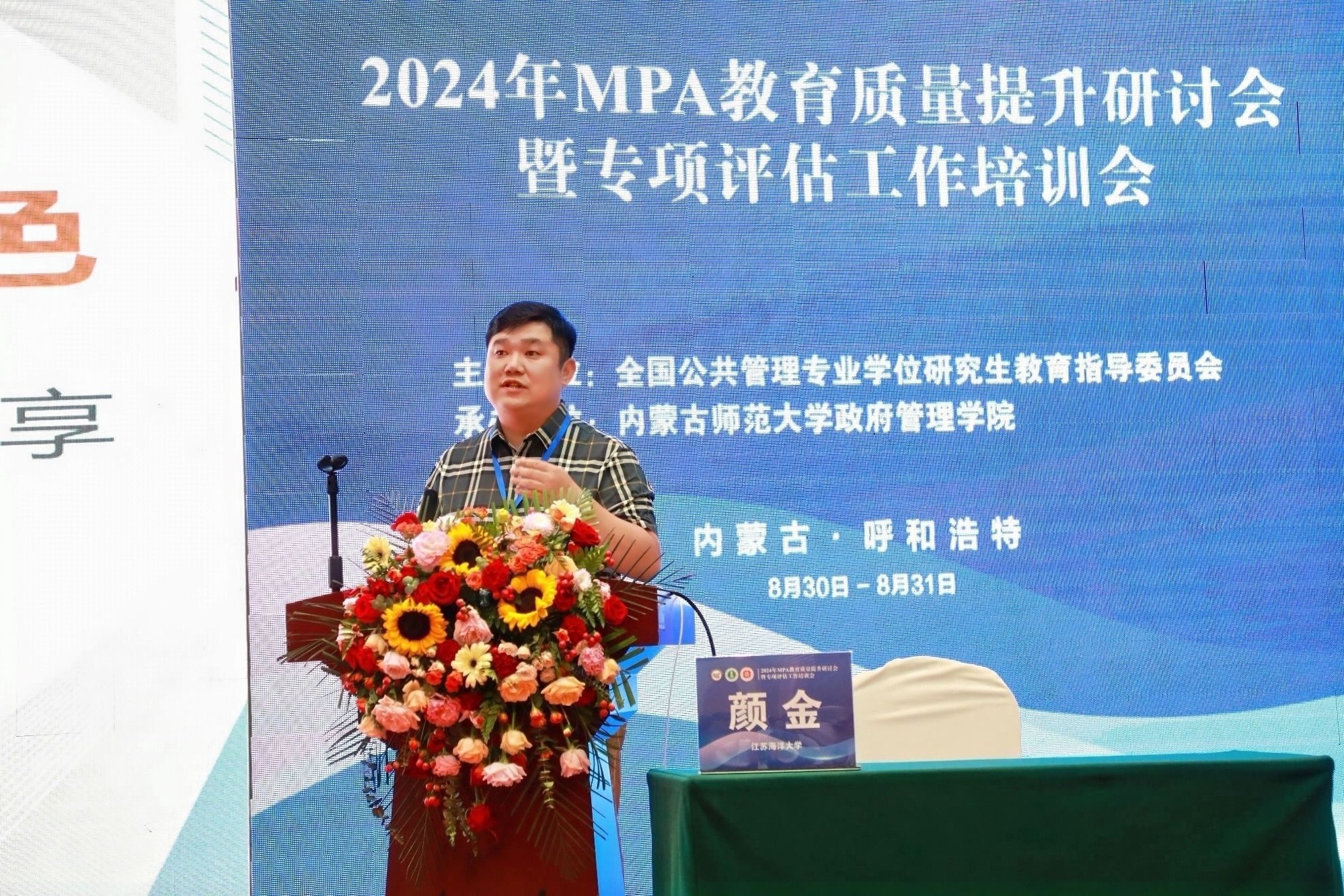 近日,我院副院长颜金副教授在2024年MPA教育质量提升研讨会暨专项评估工作培训会上作经验交流发言。会议由全国MPA教指委主办,内蒙古师范大学政府管理学院承办,来自全国75所院校的136名MPA培养单位负责人参加培训会议。