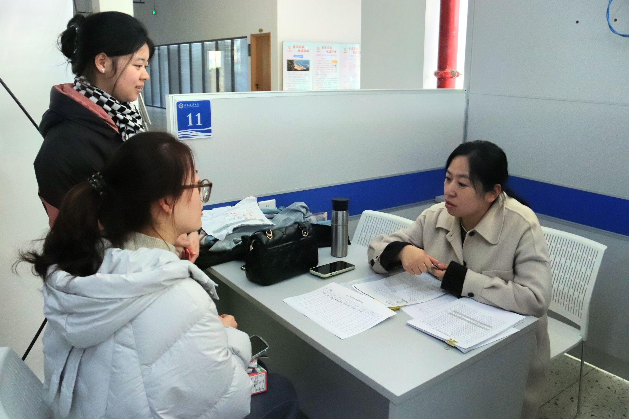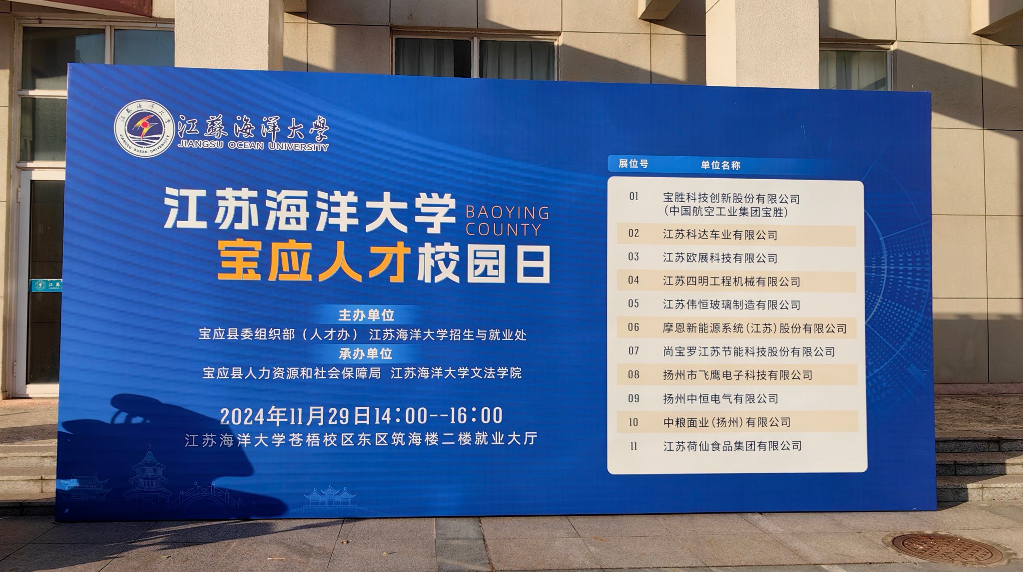 11月29日下午2时,江苏海洋大学宝应人才校园日于苍梧校区东区筑海楼二楼就业大厅顺利举办。此次活动由宝应县委组织部人才办和江苏海洋大学招生与就业处携手主办,宝应县人力资源和社会保障局和江苏海洋大学文法学院共同承办。江苏海洋大学文法学院党委副书记王国银及辅导员徐科宇现场指导工作。