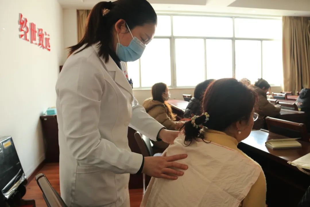 活动最后,连云港市妇幼保健院中医妇科中医治疗师马兆倩为参与者们进行爱心义务会诊。她特别关注到了那些因日常教学工作繁重,难以抽身前往医院寻求专业医疗建议的老师们,并运用其深厚的中医知识,为老师们提供了个性化的中医针灸与推拿服务。