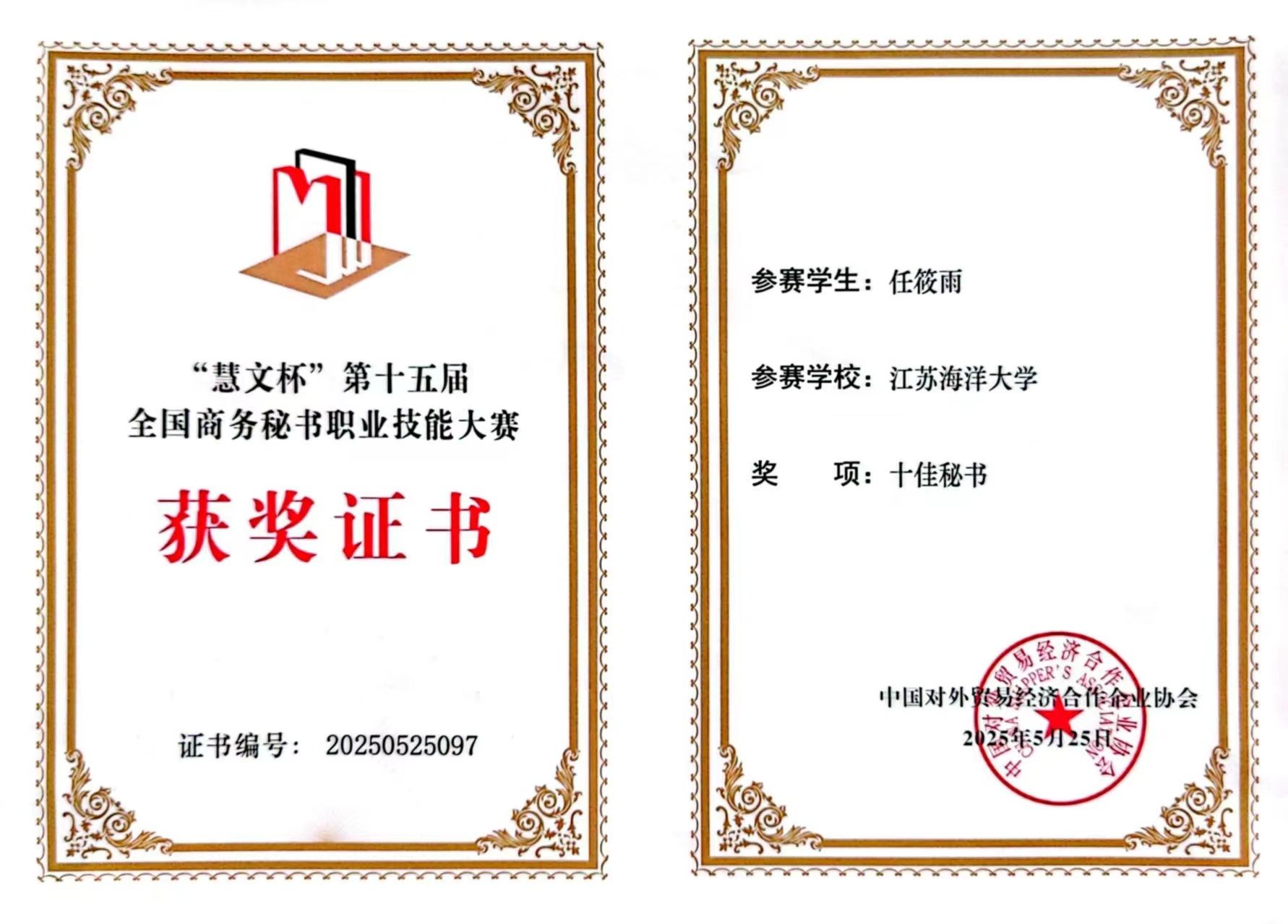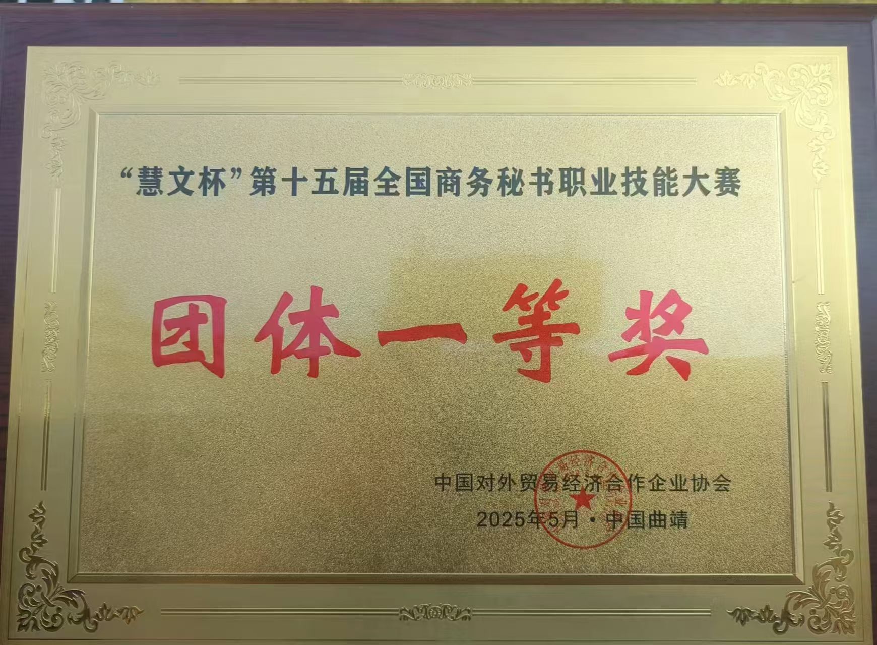2025年5月23日至25日,“慧文杯”第十五届全国商务秘书职业技能大赛在云南曲靖盛大举行。我院学子获得团体一等奖,在个人事务处理中四人获奖,其中特等奖、一等奖各一项,并且首次获得“十佳秘书”称号。