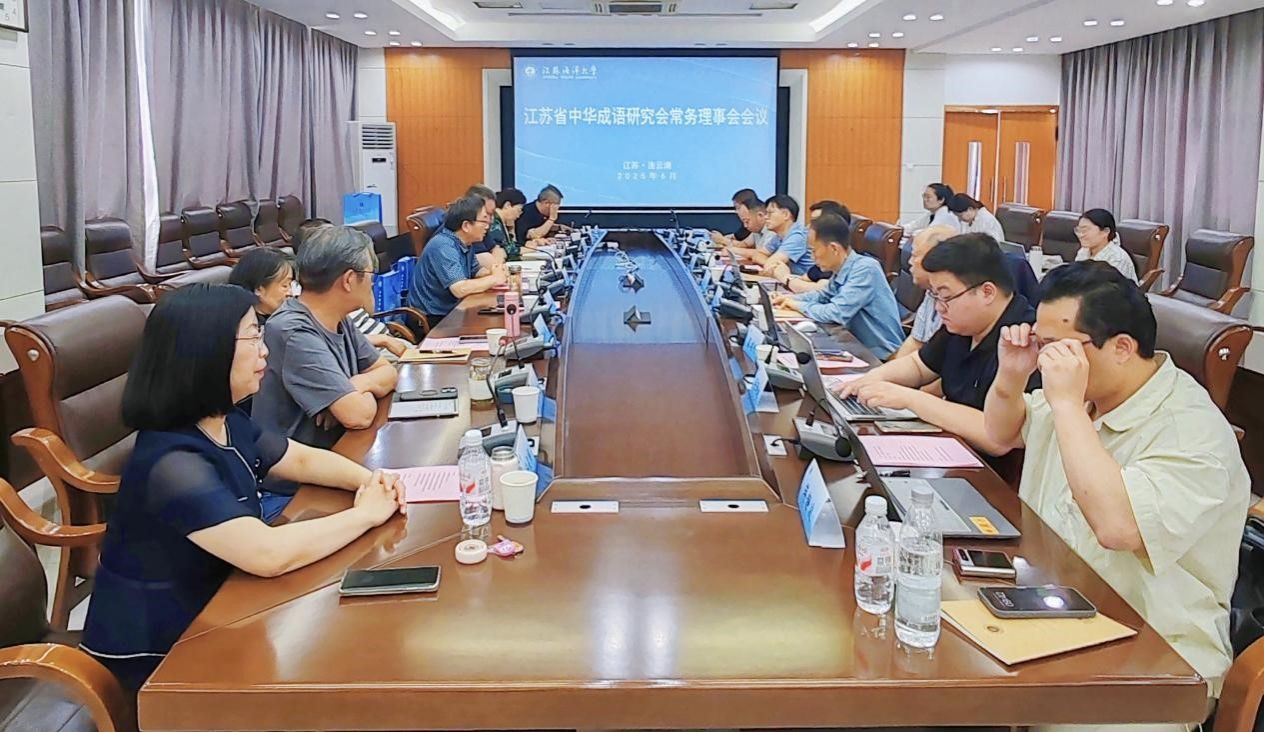 2025年6月7日上午,江苏省中华成语研究会常务理事会在我校召开。研究会会长、苏州大学文学院教授、博士生导师王建军,副会长、我校教务处处长、文法学院教授安俊丽,其他副会长、常务理事和基地单位代表出席会议。山西社科院语言研究所所长安志伟、我校文法学院院长吴明忠和连云港师专三附小校长陈红应邀列席会议。研究会秘书长、常州开放大学理工学院院长何雪芬主持会议。