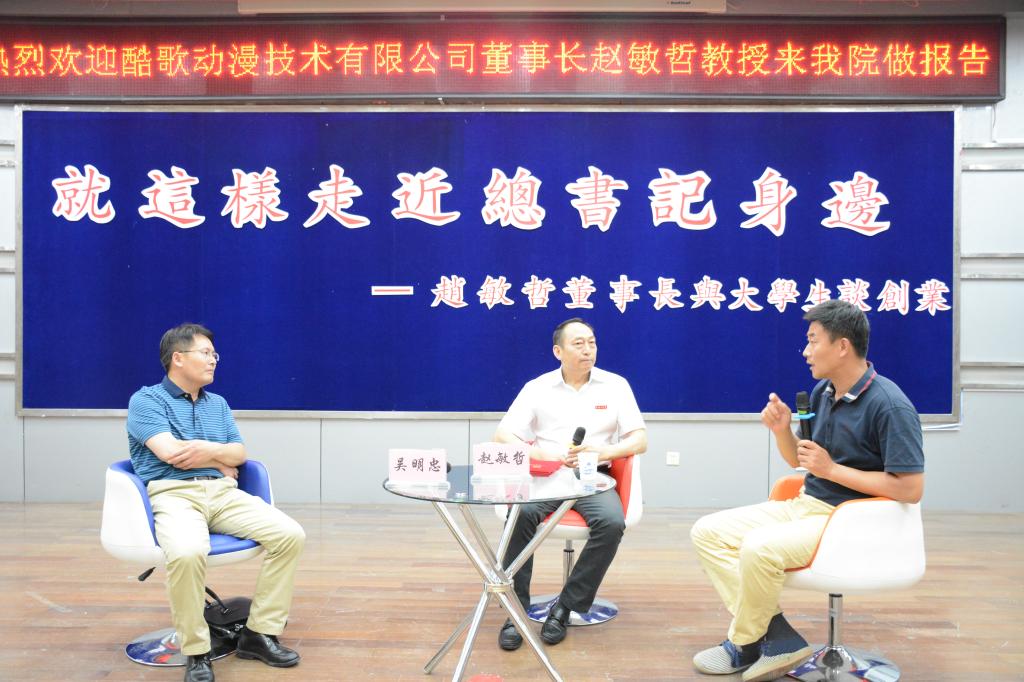 6月12日晚7点,文学院在艺术楼报告厅举办了以“就这样走近总书记身边——赵敏哲董事长与大学生谈创业”为主题的专题讲座。副校长李梅英教授出席了此次讲座并为赵敏哲博士颁发了兼职教授聘书,文学院院长吴明忠主持了本次讲座,参加本次讲座的还有文学院党委副书记田德勇、文学院辅导员李思雨。