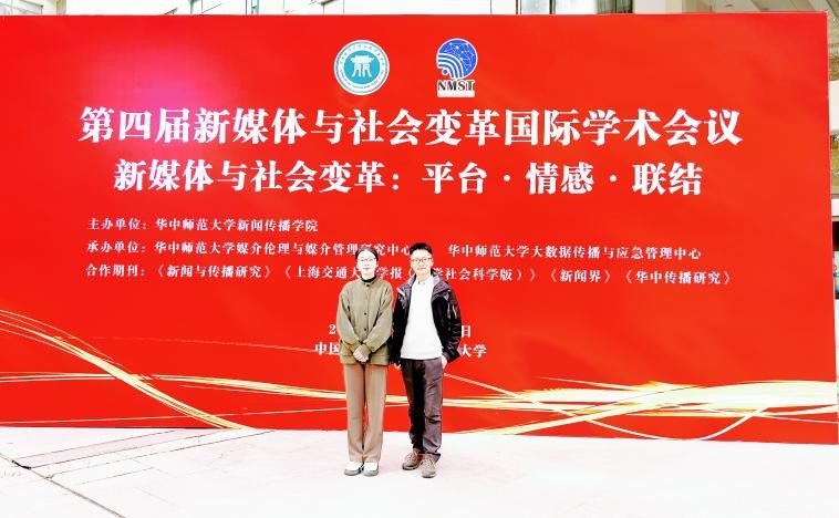 我院新闻广告系党支部书记、副教授邱立楠及其2020级本科生顾倩莲受邀参加了本次国际学术研讨会,并在“新媒体时代的情感传播”分论坛作了题为“评论区里的‘是’与‘非’:‘新黄色新闻’的生产与再传播”的学术分享。此前,邱立楠博士在ChatGPT热潮期间,与顾倩莲同学就合作发表了《从情境搭建到情境再分离:人机传播中用户ChatGPT的互动实践》一文,并成功与2023年10月发表在CSSCI来源期刊《中国编辑》,该文并成功登在该期杂志封面,被列入重点文章予以推荐。邱立楠博士在论坛报告中指出,在短视频传播景观和新闻形态对短视频内容生产活动的持续驯化与强劲规训下,官方媒体在平台算法与流量导向的双向裹挟中,短视频的内容生产在形式与内涵两个层面发生了“视觉转向”,进而催生出新一轮的“黄色新闻”。邱立楠博士及其学生顾倩莲通过参与式观察法,通过评论区这一高互动性的窗口,以公共性视角探析了新黄色新闻的生产逻辑及其反作用。华中科技大学新闻与信息传播学院教授郭小平在点评中表示,邱立楠博士通过公共性视角,连接“新闻+”与“拼贴式”现象,反思新媒体环境下的新闻价值的位移与让渡,明确指出该背景下的新闻属性的偏移与非价值性,对当下官方媒体尤其是县级媒体“造血”提出前瞻性的思考。