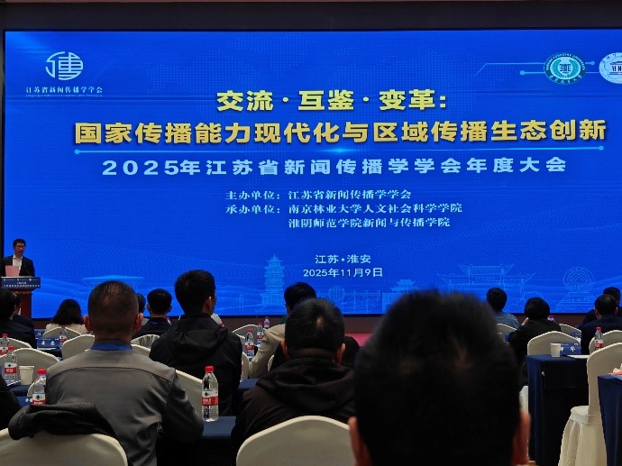 11月8日至9日,2025年江苏省新闻传播学学会年度大会在淮安召开。本次大会以"交流·互鉴·变革:国家传播能力现代化与区域传播生态创新"为主题,设置了开幕式、主旨报告、平行分论坛等环节,围绕国家传播战略、区域传播创新、智媒发展等前沿议题展开深入研讨。江苏海洋大学文法学院作为理事单位,新闻广告系教师朱述超博士参会。